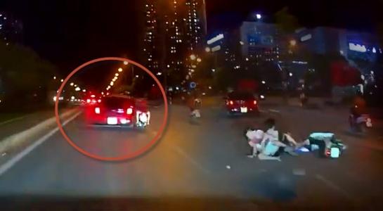 3 thiếu niên bị ô tô ép té xe xuống đường.