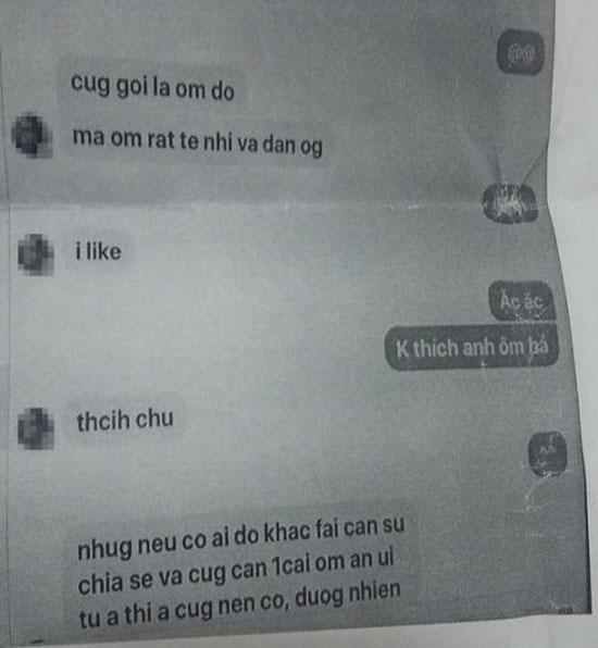 Những hình ảnh chụp lại tin nhắn trong điện thoại và Facebook được cho là của em A. và cô N. có nội dung như: “Em ước gì tối nay mình bên nhau, sợ sau này thương A. quá không bỏ được mà không thể đến được, chỉ có việc đi chơi thôi A. còn chưa để tui an tâm nói chi đến việc bảo vệ, ngủ ngon nhé my love...”.
