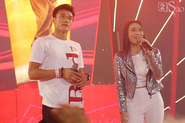 Thủ môn Bùi Tiến Dũng bất ngờ xuất hiện cùng Mỹ Tâm trên sân khấu khiến khán giả hò reo không ngừng