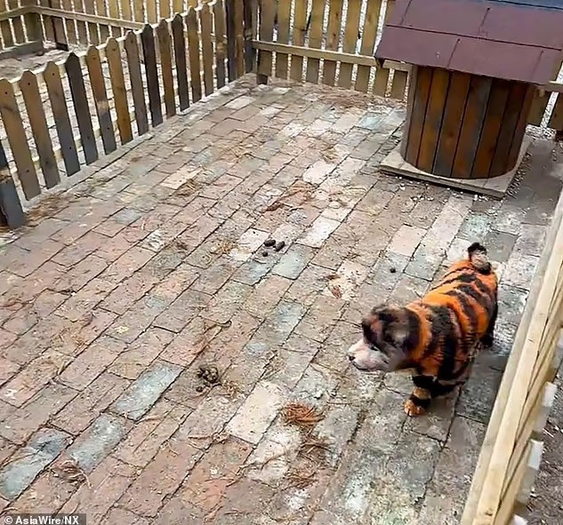 Hình ảnh về loài vật "độc lạ" này được các du khách ghi lại tại vườn thú vịnh Tần Hồ ở Thái Châu, tỉnh Giang Tô. Nếu nhìn thoáng qua, nhiều người sẽ dễ dàng lầm tưởng đây là hổ. Tuy nhiên, thực tế chúng là 2 chú chó Chow Chow đã bị nhuộm lông.