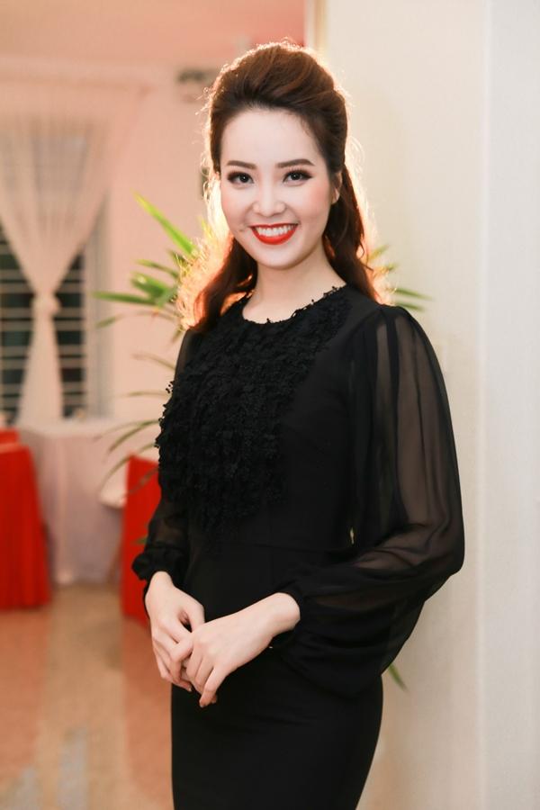 Á Hậu Thụy Vân xuất hiện tại sự kiện với trang phục đen kín đáo và thanh lịch.