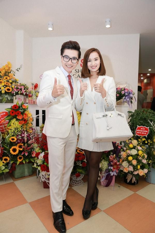 Diễn viên Lã Thanh Huyền diện cả "cây" trắng tone-sur-tone với chủ nhân sự kiện.