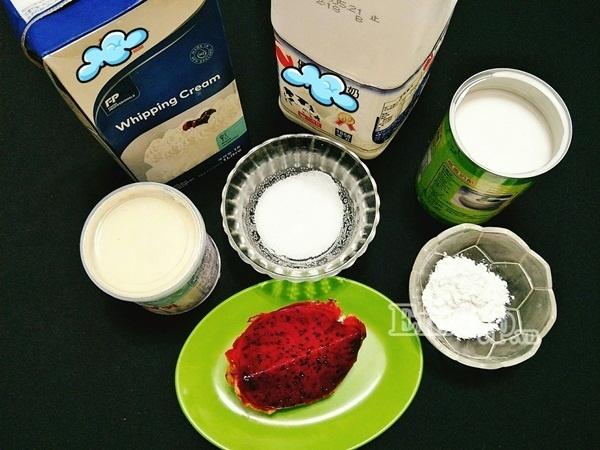 Nguyên liệu làm kem sữa thanh long gồm: