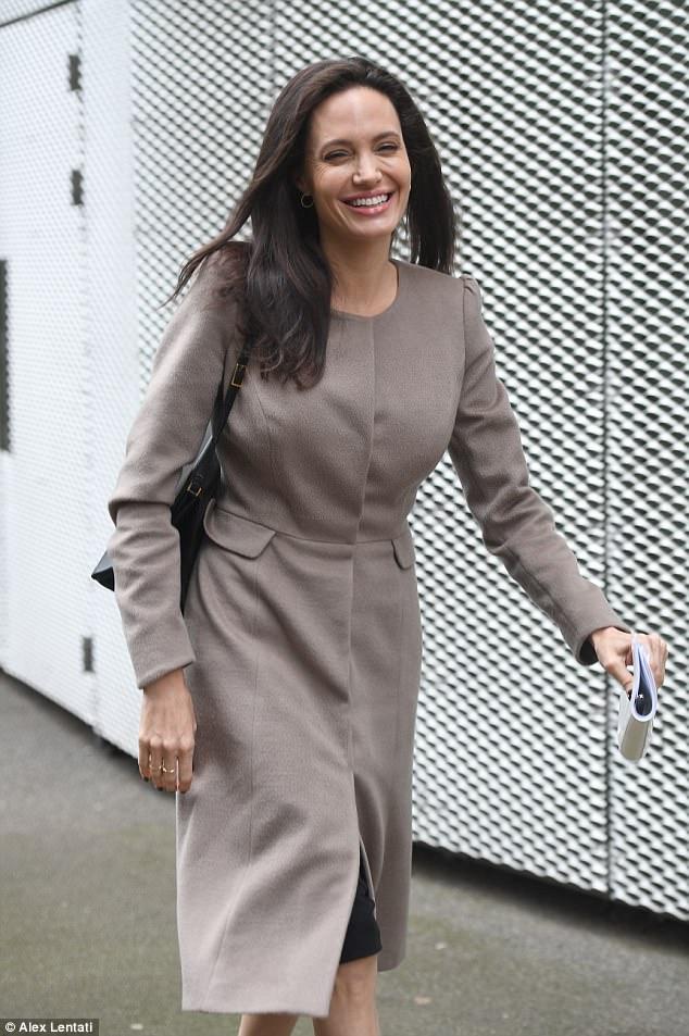 Ngày 14/3, Angelina Jolie đã xuất hiện tại Học viện kinh tế London để thực hiện công việc giáo sư thỉnh giảng. Ở tuổi 41, nữ minh tinh xinh đẹp giờ đã lộ dấu hiệu lão hóa là những vết chân chim nhăn nheo khi cô tươi cười.