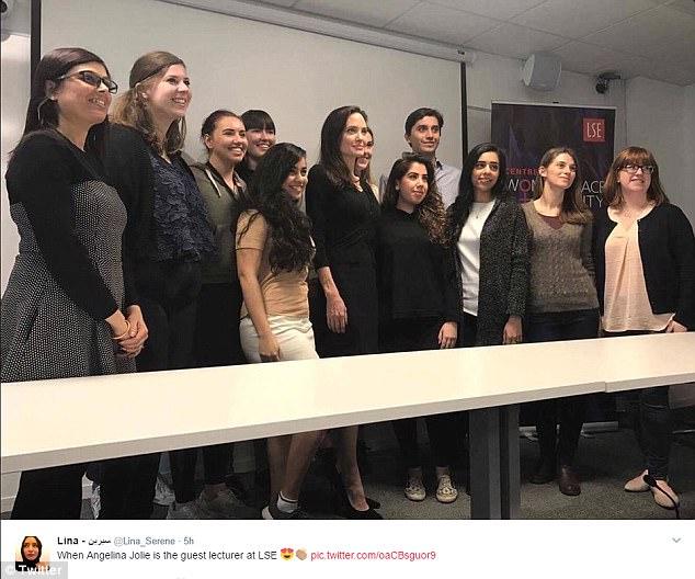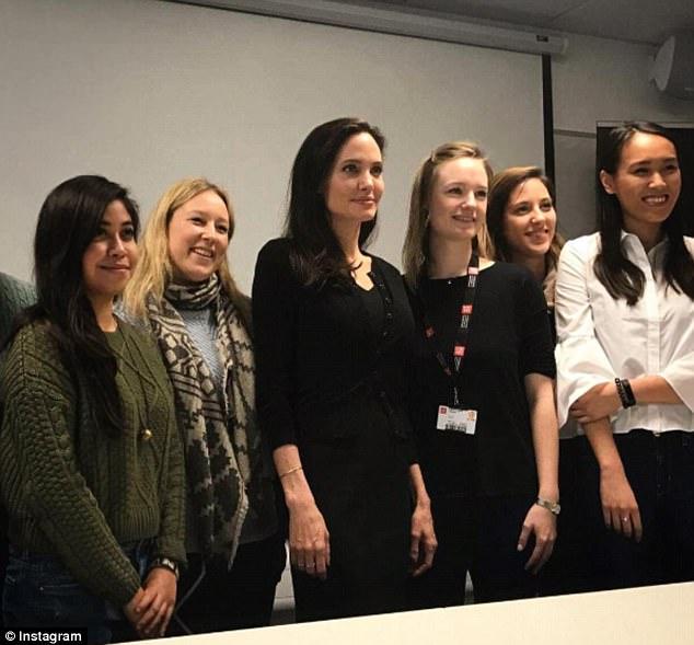 Nữ minh tinh điện ảnh đã được mời đến Học viện kinh tế London để giảng dạy về tác động tiêu cực của chiến tranh đối với phụ nữ, về bạo lực tình dục trong chiến tranh. Cô chia sẻ về trải nghiệm này của mình: "Tôi cảm thấy hơi hồi hộp và cả hạnh phúc nữa. Tôi mong mình sẽ làm tốt. Việc này rất quan trọng đối với tôi".