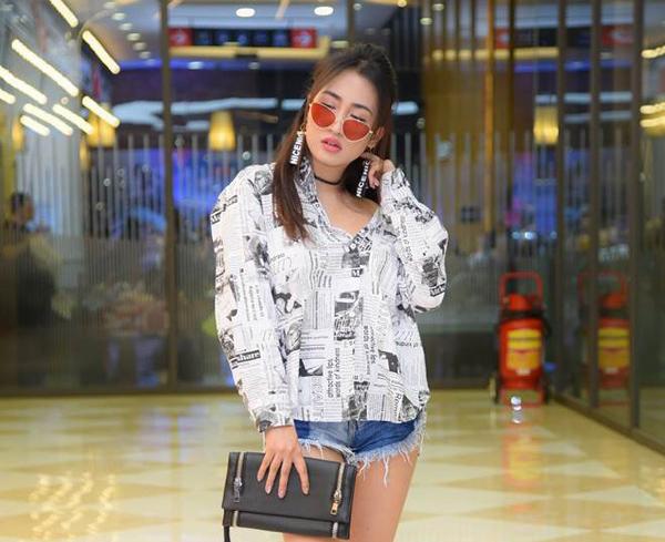 DJ Trang Moon giấu nhẹm đường cong nóng bỏng trong thiết kế áo rộng thùng thình kết hợp shorts jeans ngắn cũn.