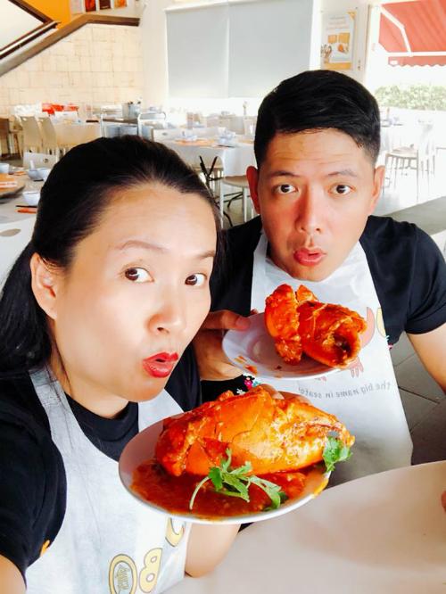 Trong thời gian quá cảnh ở Singapore, hai vợ chồng tranh thủ đi ăn cua sốt ớt.