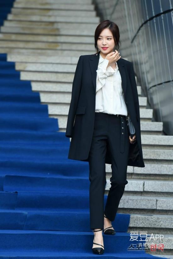 Nữ diễn viên Kim Ha Neul lại chọn cho mình set đồ đen đơn giản, nhẹ nhàng với váy chữ A và blazer đen thanh lịch.