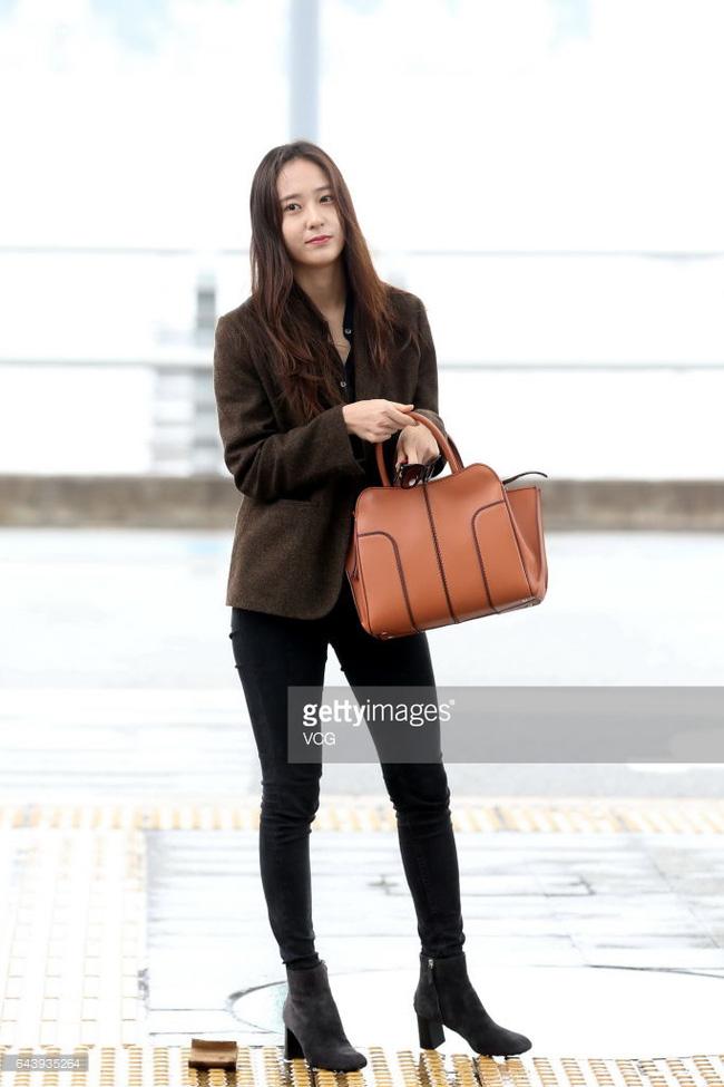 Không cần cầu kỳ trong cách chọn và kết hợp trang phục thế nhưng Krystal vẫn nổi bật với phong cách và thần thái sang chảnh. Cô nàng gợi ý một cách kết hợp quen thuộc áo blazer dáng cơ bản cùng skinny jeans và boots da lộn.