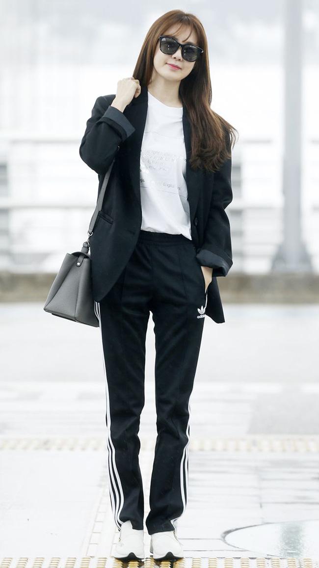 Lee Yo Won kết hợp áo blazer cùng quần thể thao adidas, tạo nên một phong cách khỏe khoắn lạ lẫm.