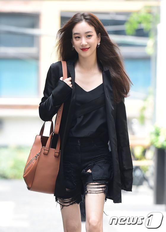 Jung Ryeo Won lại chọn cách mix đồ cá tính, phá cách khi diện áo blazer đen với shorts jeans rách phong cách "te tua".