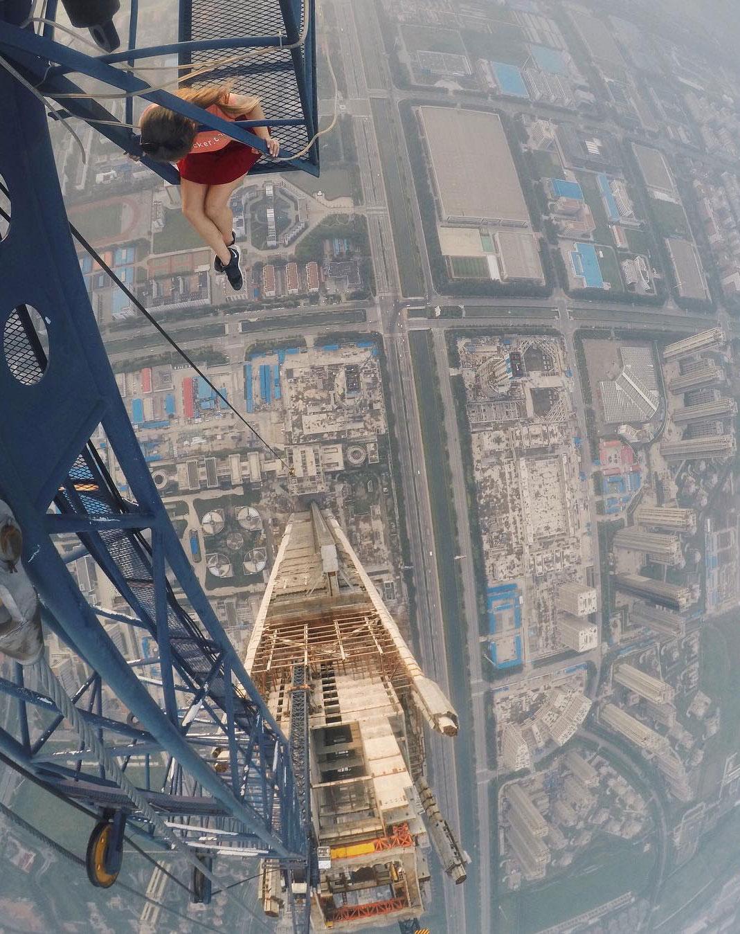 Sở thích của cô là đi du lịch khắp thế giới và check in ở những nơi cao nhất mà cô đã từng đặt chân tới. Mới đây cô và người bạn của mình thực hiện bộ ảnh trên đỉnh của một tòa nhà cao nhất thế giới với độ cao 640 mét tại tỉnh Thiên Tân, Trung Quốc