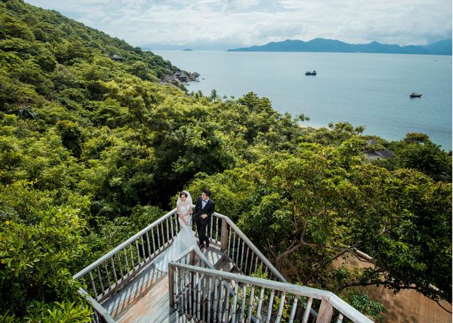Chia sẻ về bộ ảnh cưới, Bích Trâm cho biết cô và chồng đã chụp ảnh ở các địa điểm Hang Ráy (Ninh Thuận), Bà Nà (Đà Nẵng), đèo Hải Vân, Hội An và cuối cùng là Six Senses Côn Đảo.