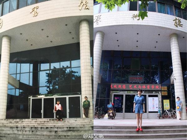 Dengyoudi tại khuôn viên trường năm 1997 và 2016.
