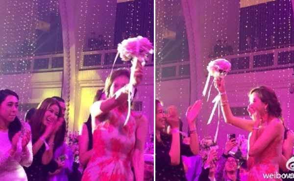 Lâm Chí Linh bắt được bó hoa cưới của Angela Baby