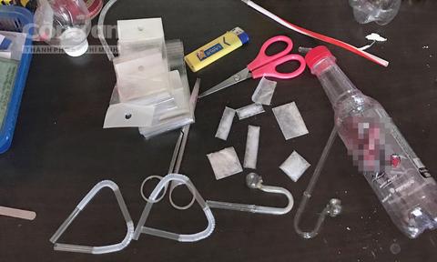 Ngoài ra, trong phòng của 3 đối tượng này còn có bộ dụng cụ để sử dụng ma tuý.