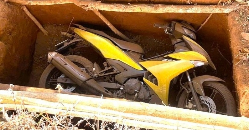 Đây là chiếc xe hai tên cướp sử dụng gây án được chôn trong một cái hố dưới mương.