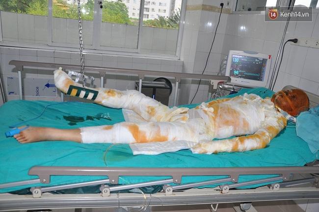 Các bác sĩ cho biết, Hằng bị bỏng sâu 60%, hai cánh tay có nguy cơ phải cắt bỏ.