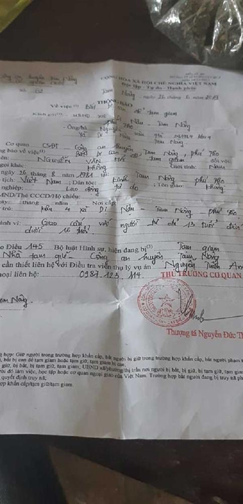 Lệnh bắt tạm giam Hải được gửi đến nhà sau khi bắt y ở ngoài đường