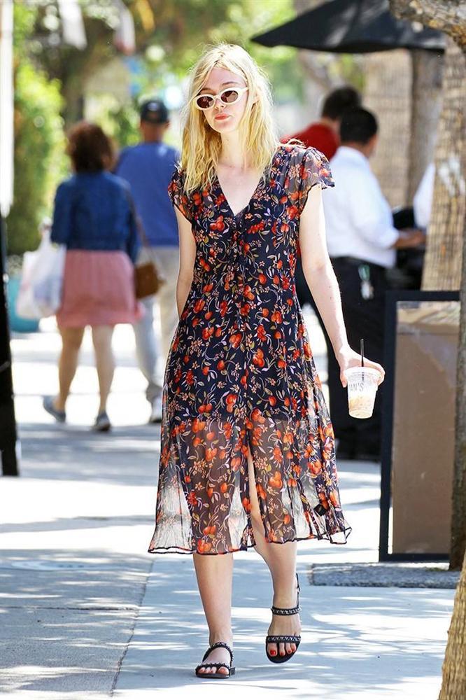 Elle Fanning lăng xê họa tiết cherry ấn tượng của mùa hè năm nay. Kiểu dáng váy 2 lớp xuyên thấu nữ tính làm nổi bật vẻ đẹp nhẹ nhàng của cô nàng.