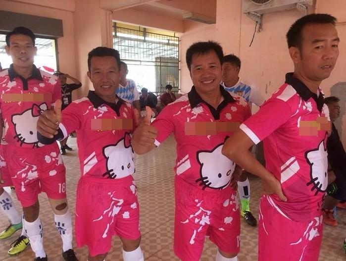 Những gương mặt nghiêm túc kết hợp cùng màu áo quá nổi bật với hình Hello kitty đáng yêu trên đồng phục, khiến ai nhìn thấy cũng phải bật cười thích thú. Chính vì vậy trong bóng đá không có phân biệt độ tuổi, hay bất kỳ điều gì có thể ngăn cản đam mê của những người yêu bóng đá cả.