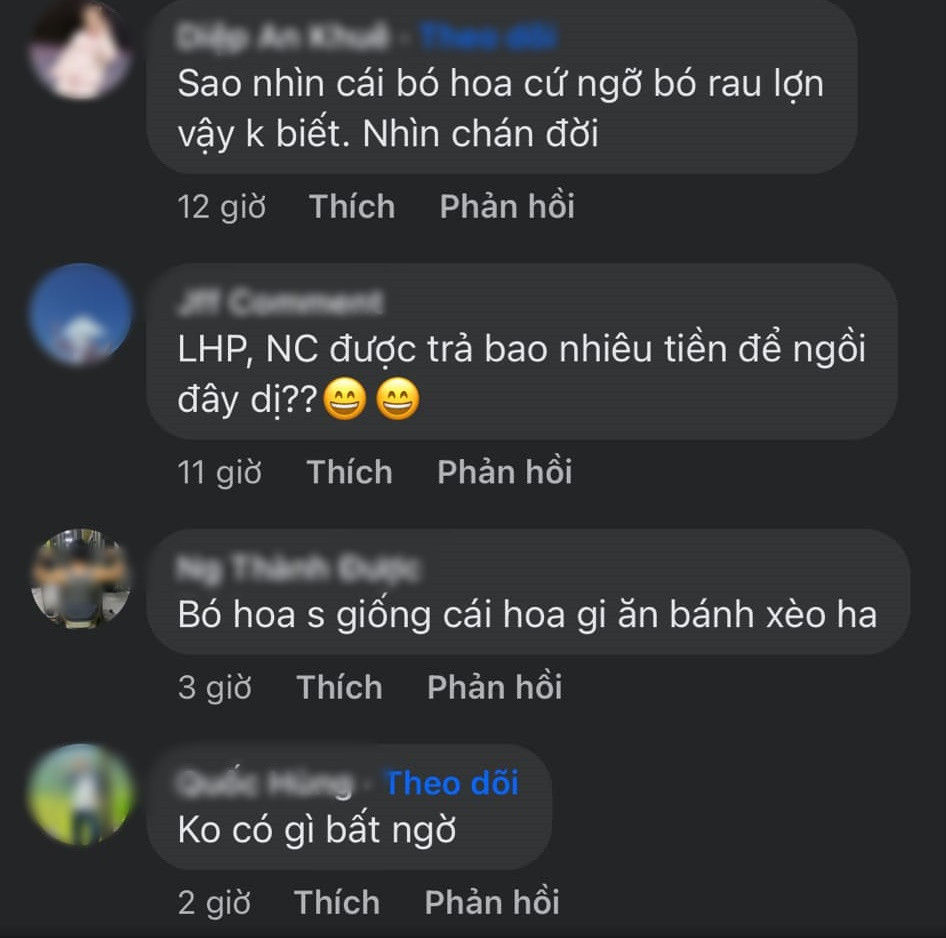 “Bó hoa đăng quang nhìn có vẻ hơi héo là do đặc tính tự nhiên của một số loại hoa. Có những loại hoa, khi vừa ngắt khỏi cành là đã nhanh chóng bị héo, không giữ được độ tươi lâu.