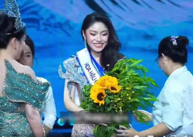 Đặc biệt, trong khoảnh khắc trao giải, một chi tiết gây nên không ít ý kiến trái chiều chính là bó hoa tặng tân hoa hậu đại dương Việt Nam.