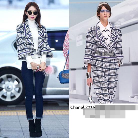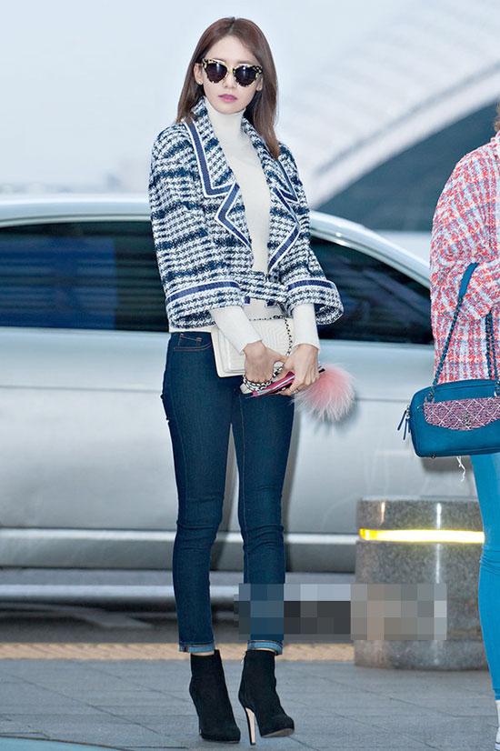 Nữ ca sĩ sinh năm 1990 Yoona lựa chọn áo khoác lửng và túi của thương hiệu danh tiếng