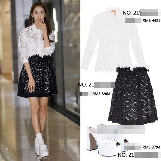 Style của Yoona bao gồm áo ren trắng, chân váy ren đen và giày trắng của hiệu No.21.