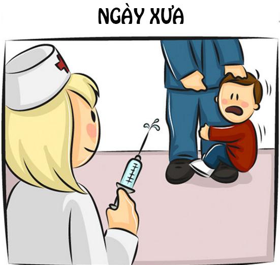 Sợ tiêm nhất trên trần đời, chỉ sợ sau ông "ba bị". Cứ hễ nhìn thấy mũi tiêm là khóc toáng lên, bám dính lấy bố mẹ như bị dính keo con voi vậy...