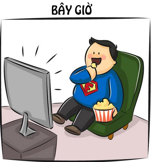 Bây giờ nhà ai mà chẳng có tivi. Tivi càng ngày càng mỏng, còn người thì càng ngày càng to...
