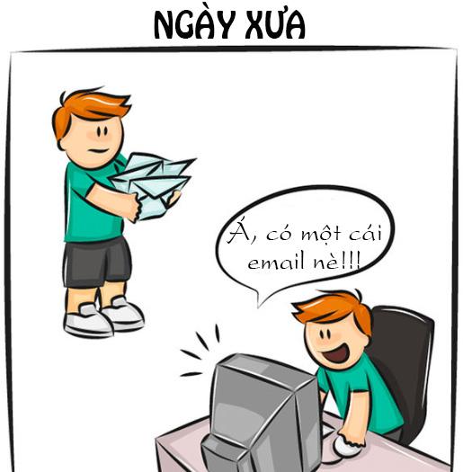 Ngày xưa chủ yếu là liên lạc bằng thư tay. Hiếm hoi lắm mới nhận ược một lá email không phải là... spam!