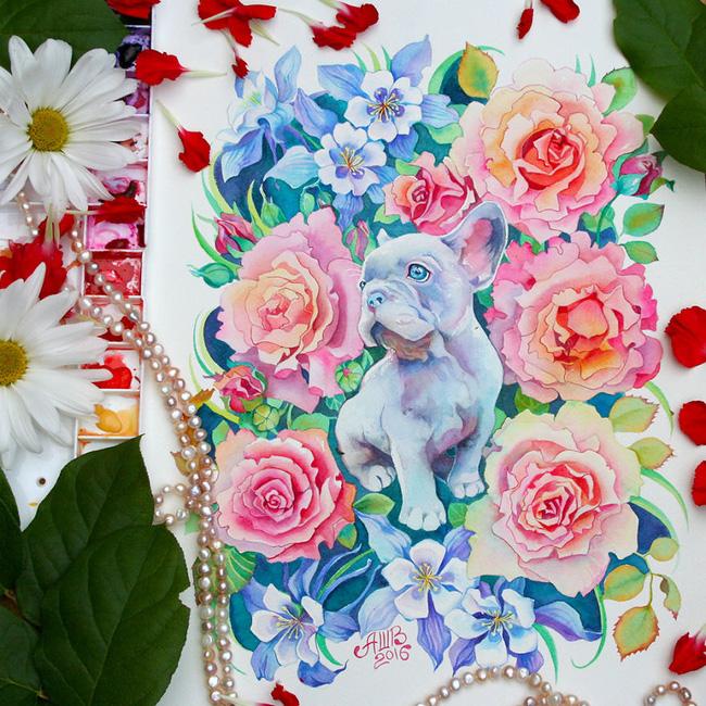 Sở trường của Anna là những bức tranh màu nước theo phong cách hoa lá cành.