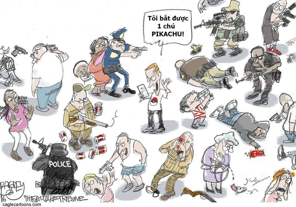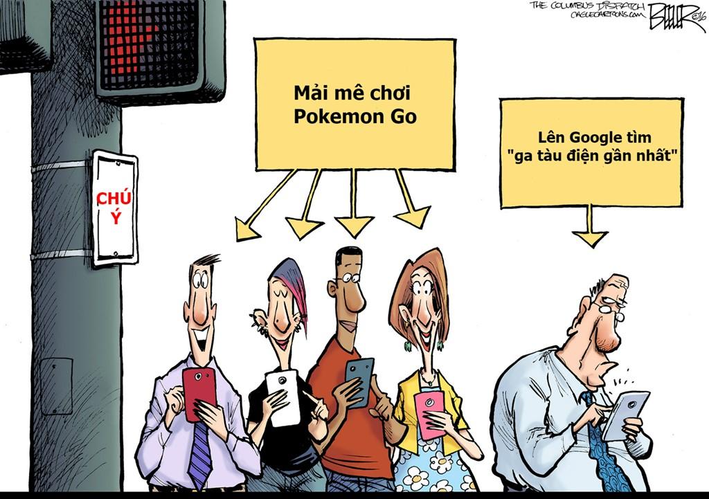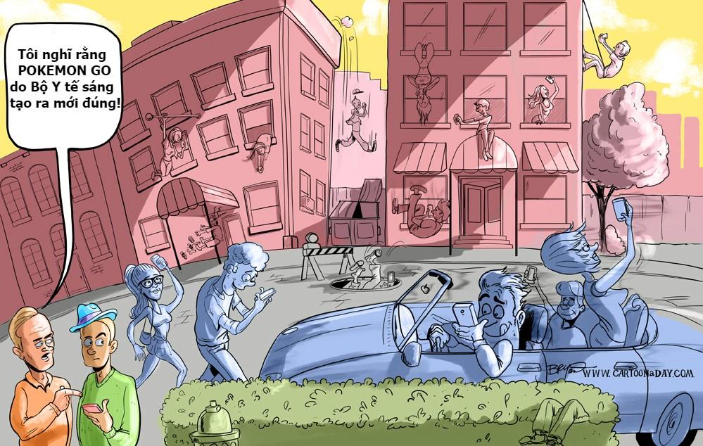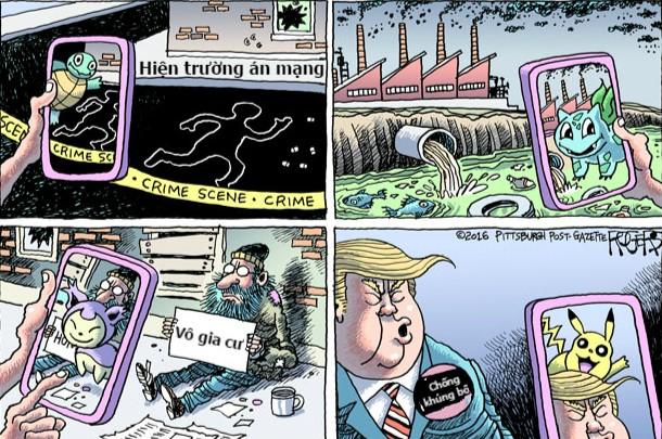 Pokemon Go khiến con người trở nên dửng dưng với mọi điều tồi tệ diễn ra xung quanh. Ảnh: CagleCartoon.