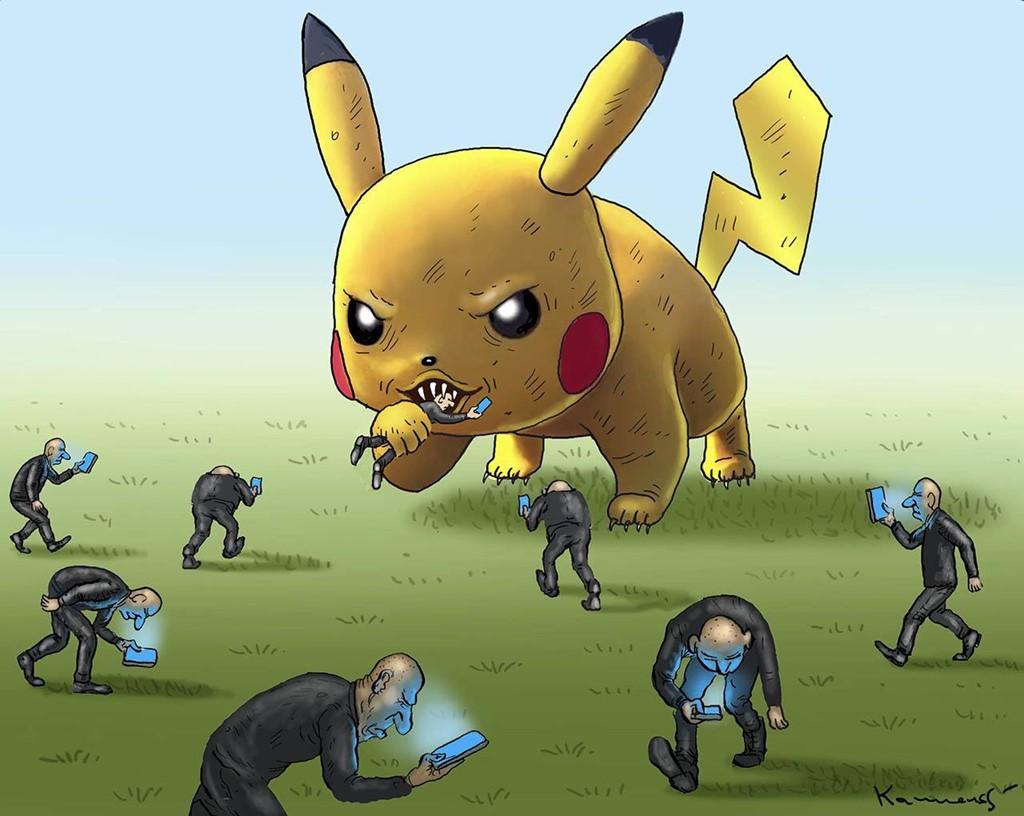 Pokemon Go khiến con người trở nên mê muội và mù quáng. Ảnh: CartoonMovement.