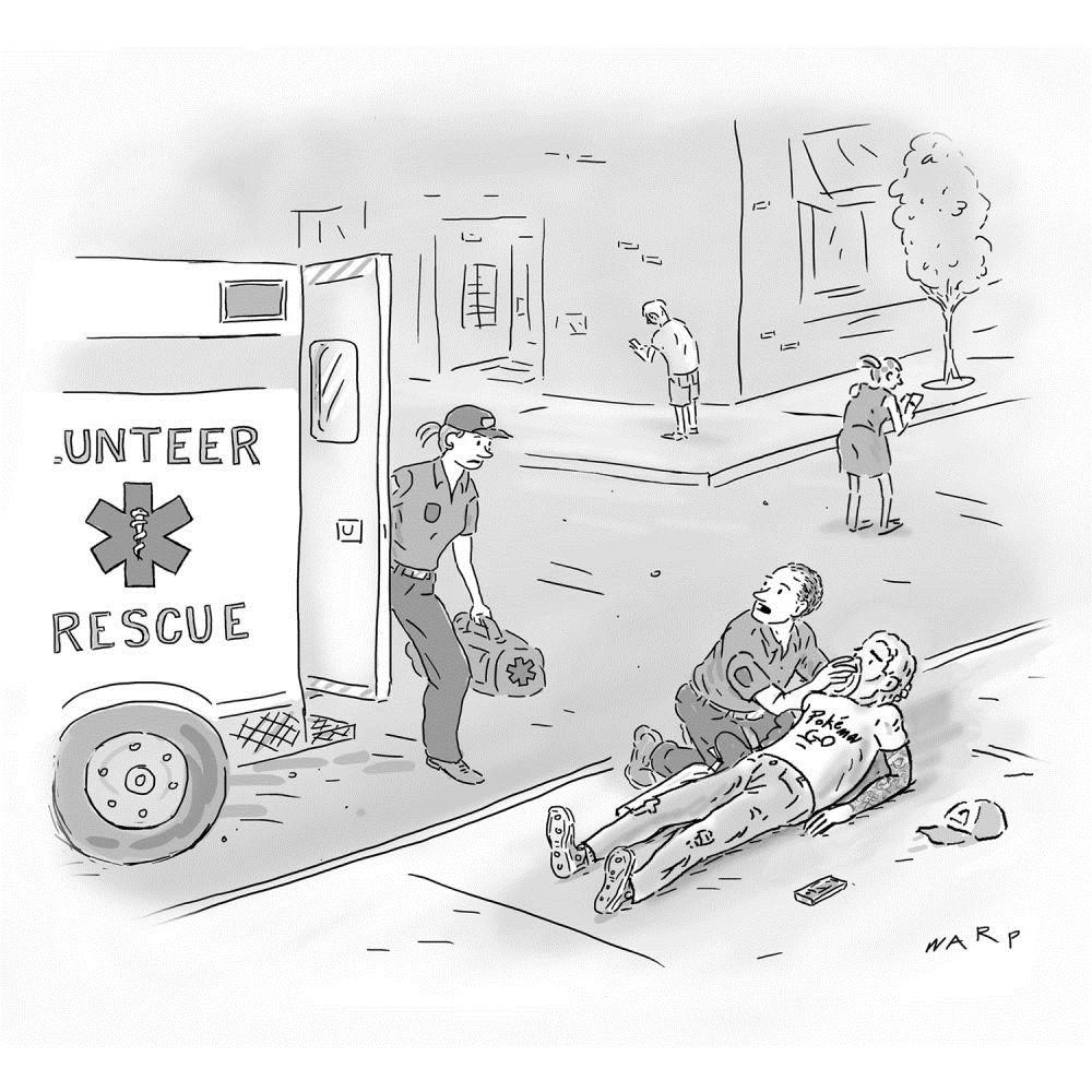 Sự giúp đỡ từ những người xung quanh trở nên xa xỉ kể từ khi Pokemon Go xuất hiện. Ảnh: CagleCartoon.