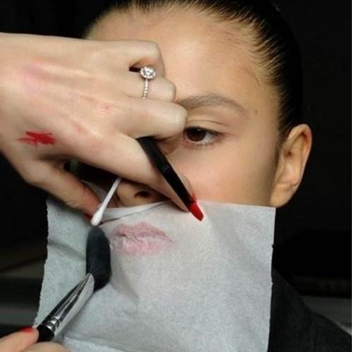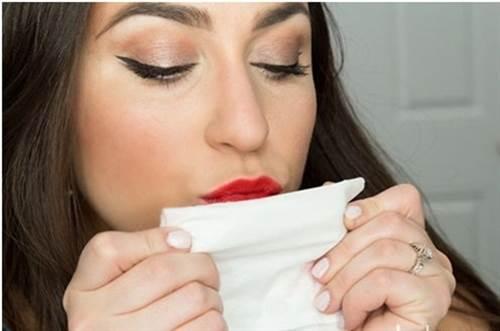 Ngoài việc kẻ viền môi cũng như sử dụng các sản phẩm hỗ trợ khác như son dưỡng, che khuyết điểm môi hay sử dụng gel giữ màu, bạn có thể thêm công đoạn sau. Đánh lên môi lớp son đầu tiên sau đó dùng khăn giấy bặm nhẹ nhàng để lấy đi lớp màu trên cùng.
