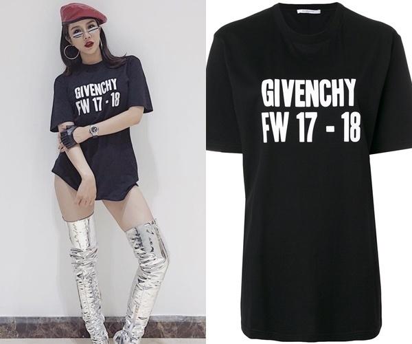 Diệp Lâm Anh diện mốt giấu quần gợi cảm bằng cách trưng dụng áo phông oversized của Givenchy. Item này trị giá $421 ~ gần 10 triệu đồng.