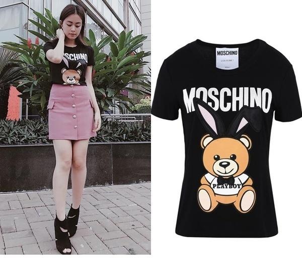 Hoàng Thùy Linh chứng minh đẳng cấp thời trang của mình cũng không hề kém cạnh khi lựa chọn một thiết kế áo phông hàng hiệu cho một ngày xuống phố. Item in hình gấu dễ thương này là thuộc hiệu Moschino trị giá $ 685 ~ gần 16 triệu đồng.