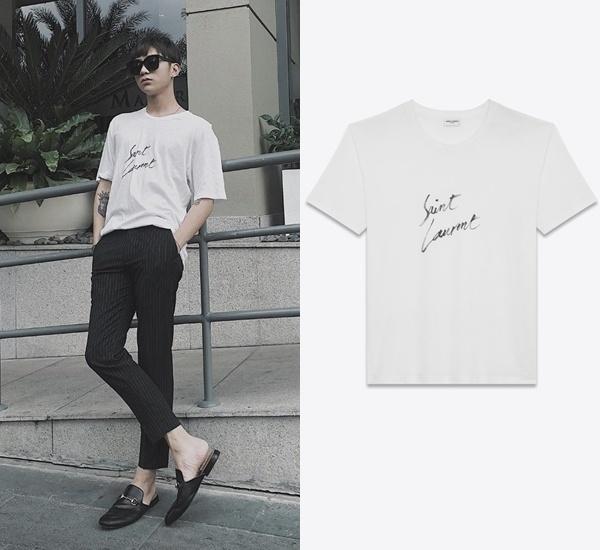 Soobin Hoàng Sơn luôn được yêu mến bởi có gu thời trang đơn giản mà trẻ trung năng động. Anh chàng lăng xê mẫu áo phông trắng dáng basic của nhà mốt Saint Laurent có giá $734 CAD ~ 13 triệu đồng.