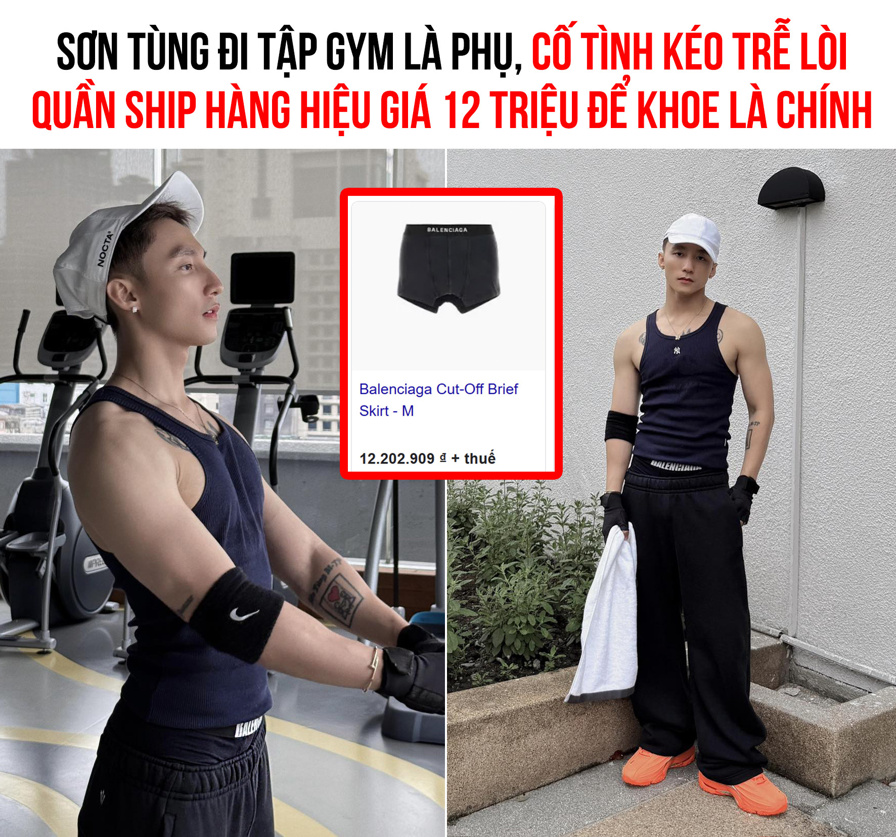 Không những thế, cách lên đồ của nam ca sĩ khi cố tình trễ nải quần nội y bên trong cũng khiến netizen khó hiểu và nhức mắt. Tuy nhiên, khi bóc giá outfit đi tập của Sơn Tùng thì ai nấy đều choáng váng.