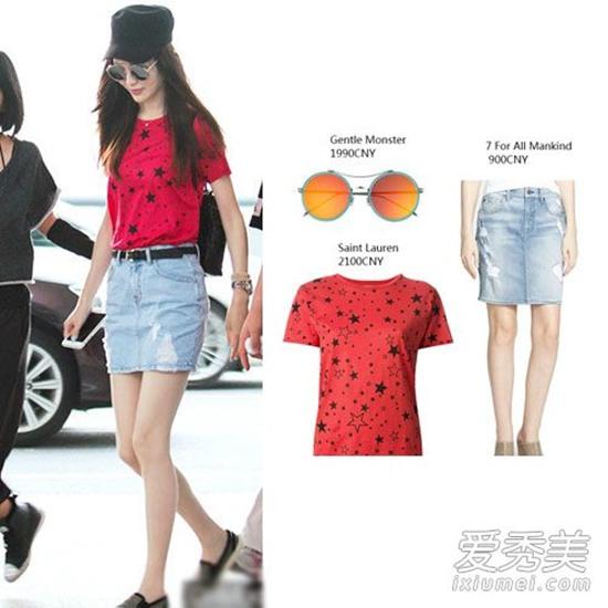 Năng động và khỏe khoắn với áo phông trắng kết hợp với chân váy màu đỏ, cùng