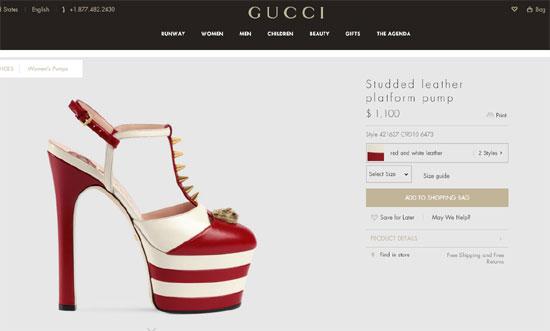 Đôi giày thuộc mẫu mới nhất nằm trong bộ sưu tập xuân 2016 của Gucci.