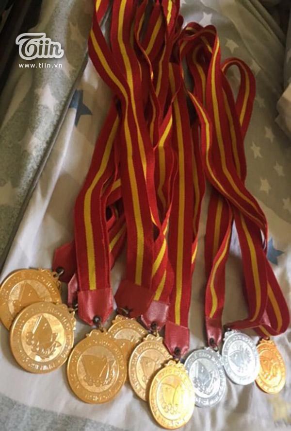 Bộ sưu tập huy chương mà Emma nhận được trong quá trình theo đuổi đam mê thể thao (gồm điền kinh và bóng chuyền)