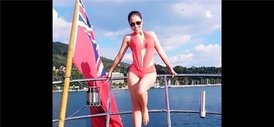 Lâm Chi Khanh cũng khoe vẻ gợi cảm với áo tắm.