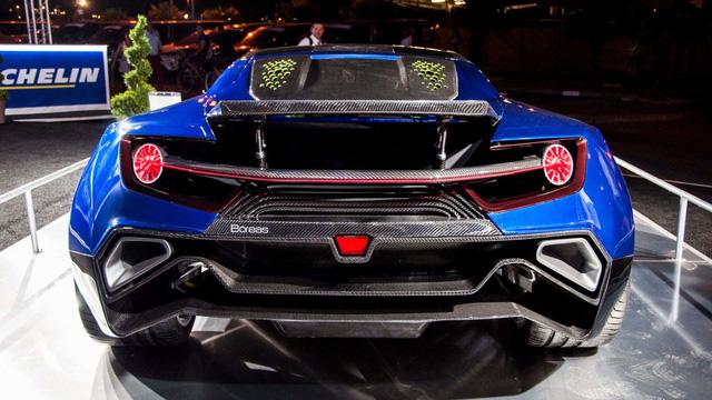Đằng sau xe xuất hiện đèn hậu hình tròn, nối với nhau bằng một đường kẻ màu đỏ khá mỏng. Riêng cặp ống xả của Boreas lại gợi liên tưởng đến siêu xe McLaren 570S.