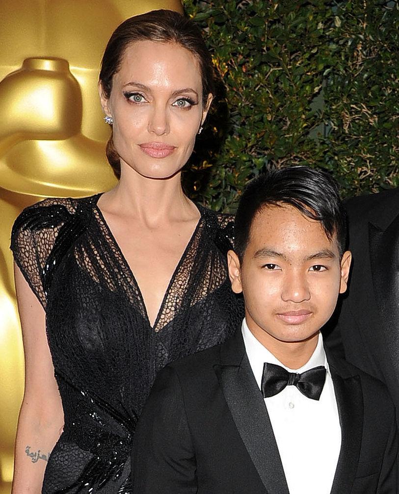 Maddox trông bảnh bao cùng mẹ chụp hình khi tham gia sự kiện.