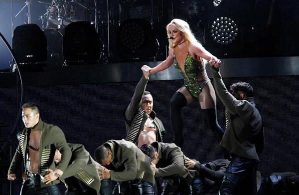 Britney thay trang phục gợi cảm khác, tiếp tục trình diễn bên các vũ công nam.