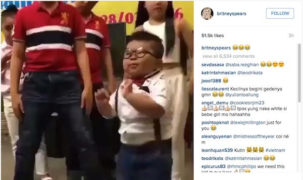 Britney Spears chia sẻ clip của Ku Tin trên trang cá nhân.