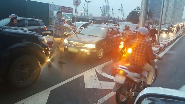 Trong trang phục bịt khẩu trang, đeo mắt kính, người phụ nữ ung dung đỗ ngược chiều với hàng trăm chiếc xe đang cố chen chúc nhau lưu thông khiến nhiều người tỏ ra bức xúc.